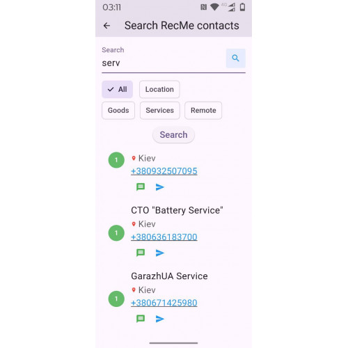 Знаходьте рекомендовані контакти яких рекомендують та дiляться люди! Не потрібно запитувати в групових чатах чи шукати поради у Facebook — просто введіть те, що вам потрібно, наприклад, «де купити генератор» або «ремонт телефону». Додаток покаже контакти, найбільш рекомендованi  іншими користувачами.